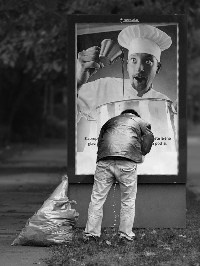 If I make directed photos, I prepare the location as much as I can. I give special consideration to light, background, props and other things. In case I don’t make directed photos, I am usually not able to influence the location to a high degree. Especially street photography is very dynamic, and things can be very lively and unpredictable. It takes special attention from me and quick reactions to unexpected situations. I try to elevate possibilities for a good photo with the appropriate approach. I closely watch the surroundings and I try to anticipate positions where there’s a greater possibility for photogenic interaction between people. If it’s possible, I try to choose interesting perspectives. With layout I pay attention to background in a way that I try to eliminate the most disturbing elements or I try to include them in the story.
