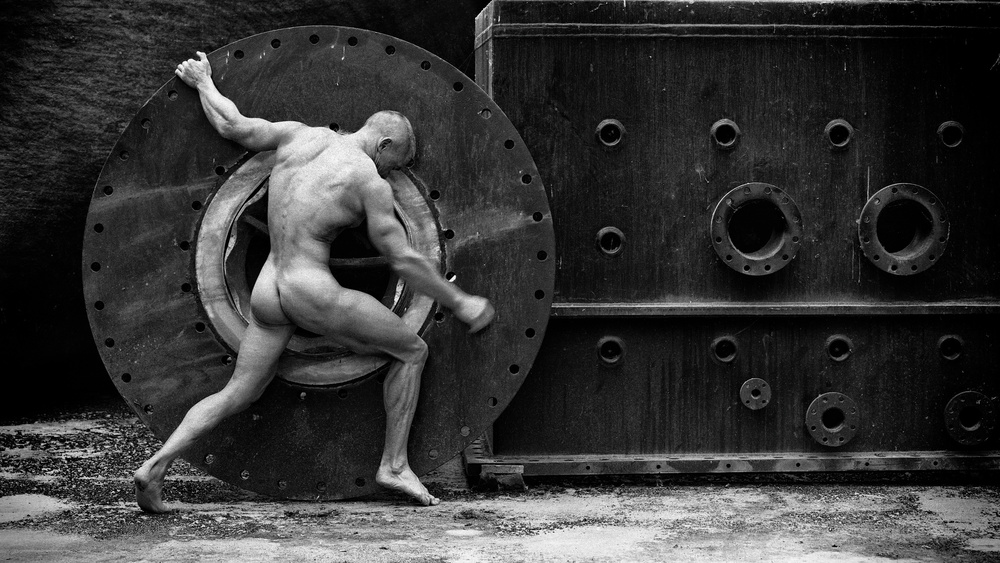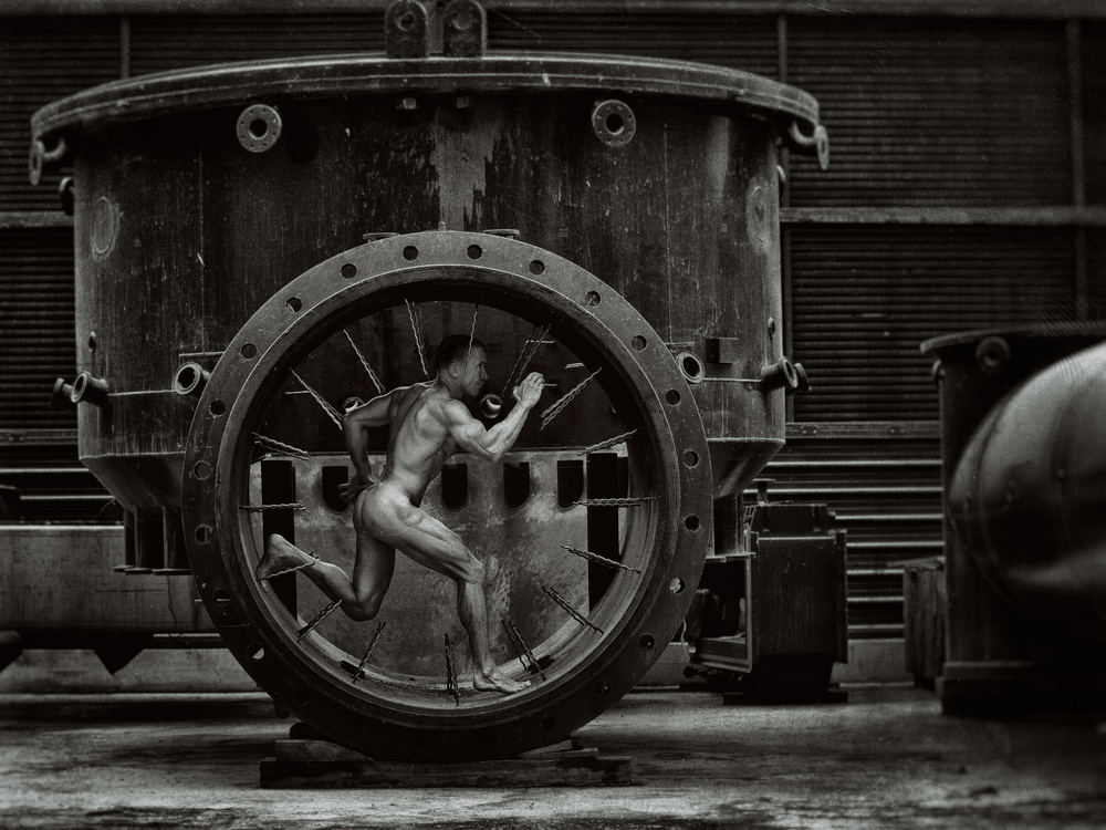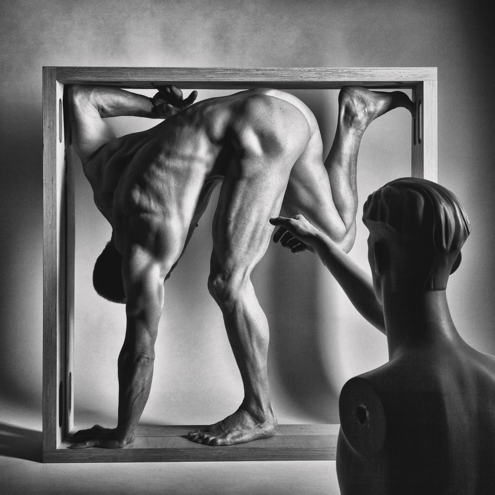 My inspirational favorites are Helmut Newton and Herb Mitts, as well as Symon Broderick for his awesome Black & White images and Michal Micky for his Series “Flagellates”. Rene Magritte is also one of my favorite artists and I love his surreal view of the world. I guess in my recent work (not on 1x yet) you could see his influence. With Ritts, I share the fascination for the (male) body. Maybe Michal Micku will inspire me to find a new way to express my thoughts. I’m fascinated with the connection of photography and technical creativity.