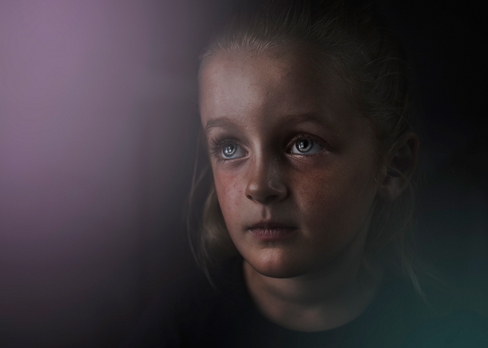 The picture is nice, I like the pose, the eyes, the light (except maybe a little on the forehead), the shadows and the effect of dissolution. The girl is indeed not “anywhere”, she is floating in a kind of cloud. Therefore, the title is very adequate. The only suggestion (in my subjective and personal opinion) could be that the lila color on the left is too intense.