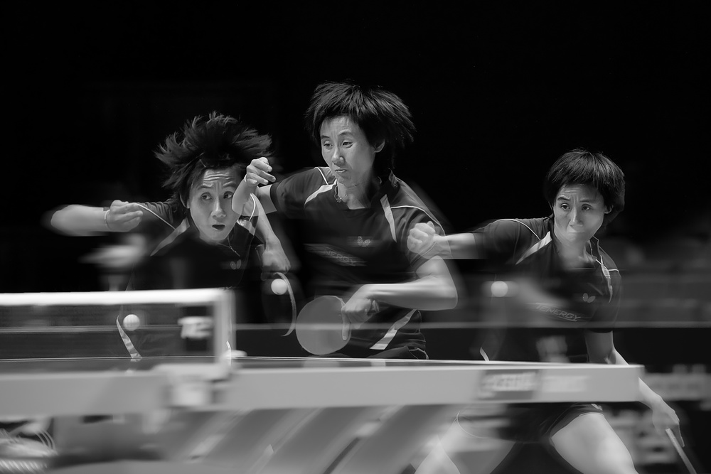 In "Offense", Rob Li did a very good job. To make his photo, Rob had to observe the athlete very well: her facial expression - so concentrated while her eyes follow that little white ball - her movements, the feeling of speed, which were all brought together by using the on camera multiple exposure.