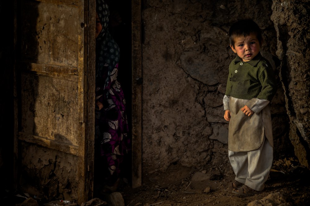 The subject of this picture (the boy) is positioned to the far right of the image leaving some ¾ of the area to depict the environment (and family) in which the boy lives. It needs little further explanation. The strong side-lighting is completely consistent with what the photographer is telling us he saw, through the title: ‘Cave Dwellers’.