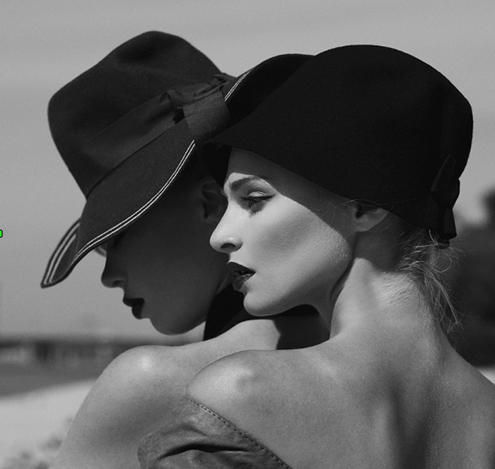 We have many good photographs and it is difficult to highlight our favorite one. But we will name a few. For example, the black and white image with two ladies wearing hats, a portrait from the series ‘Leisure Class’. It is a timeless classic image that represents elegance, class and style. The afternoon on that day of shoot was really hot and the way to location – long and sandy. We used tight retro style outfits in leather for our models and set the scene in front of the water. The atmosphere of the image submerges the spectator into a deep reflective mood…