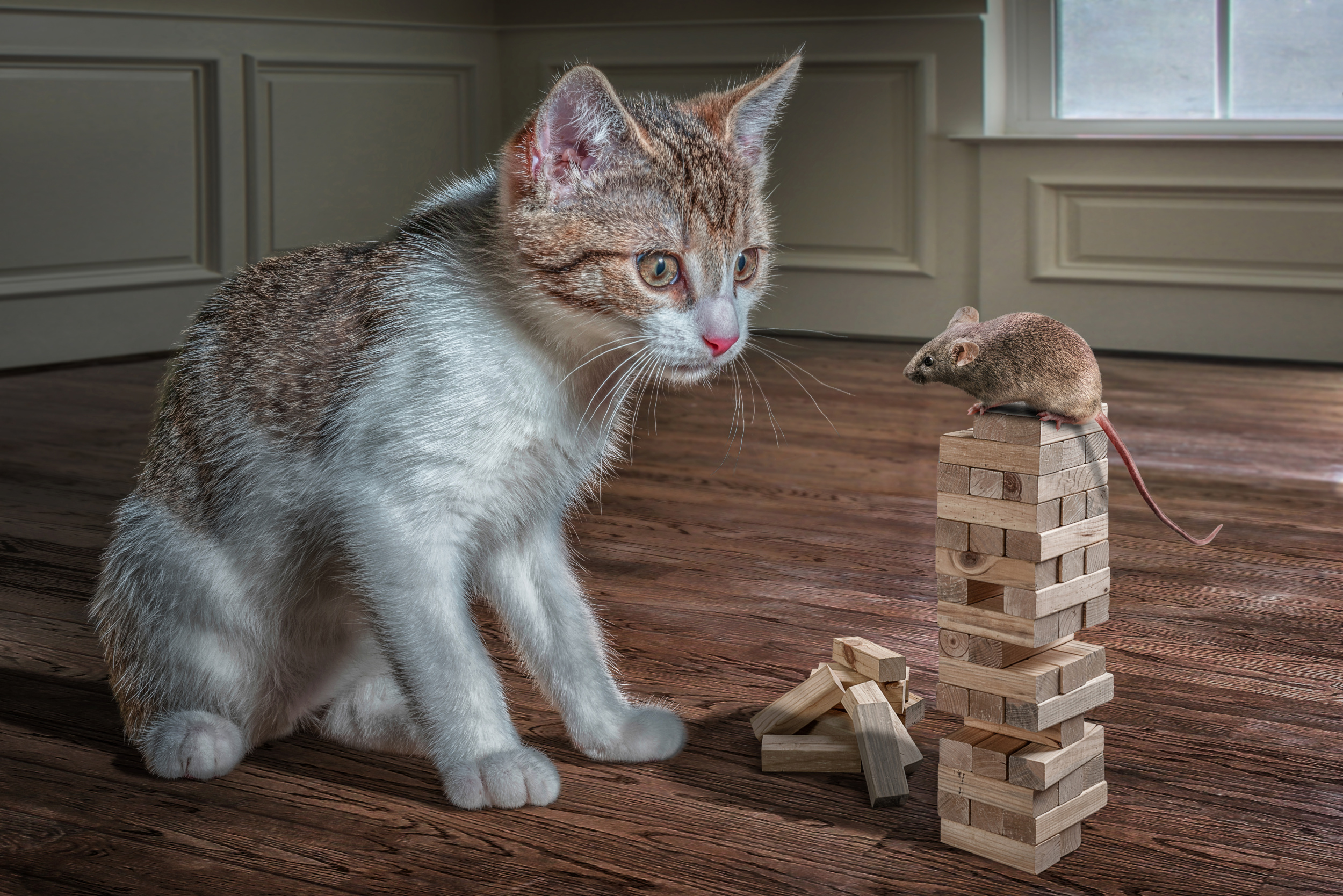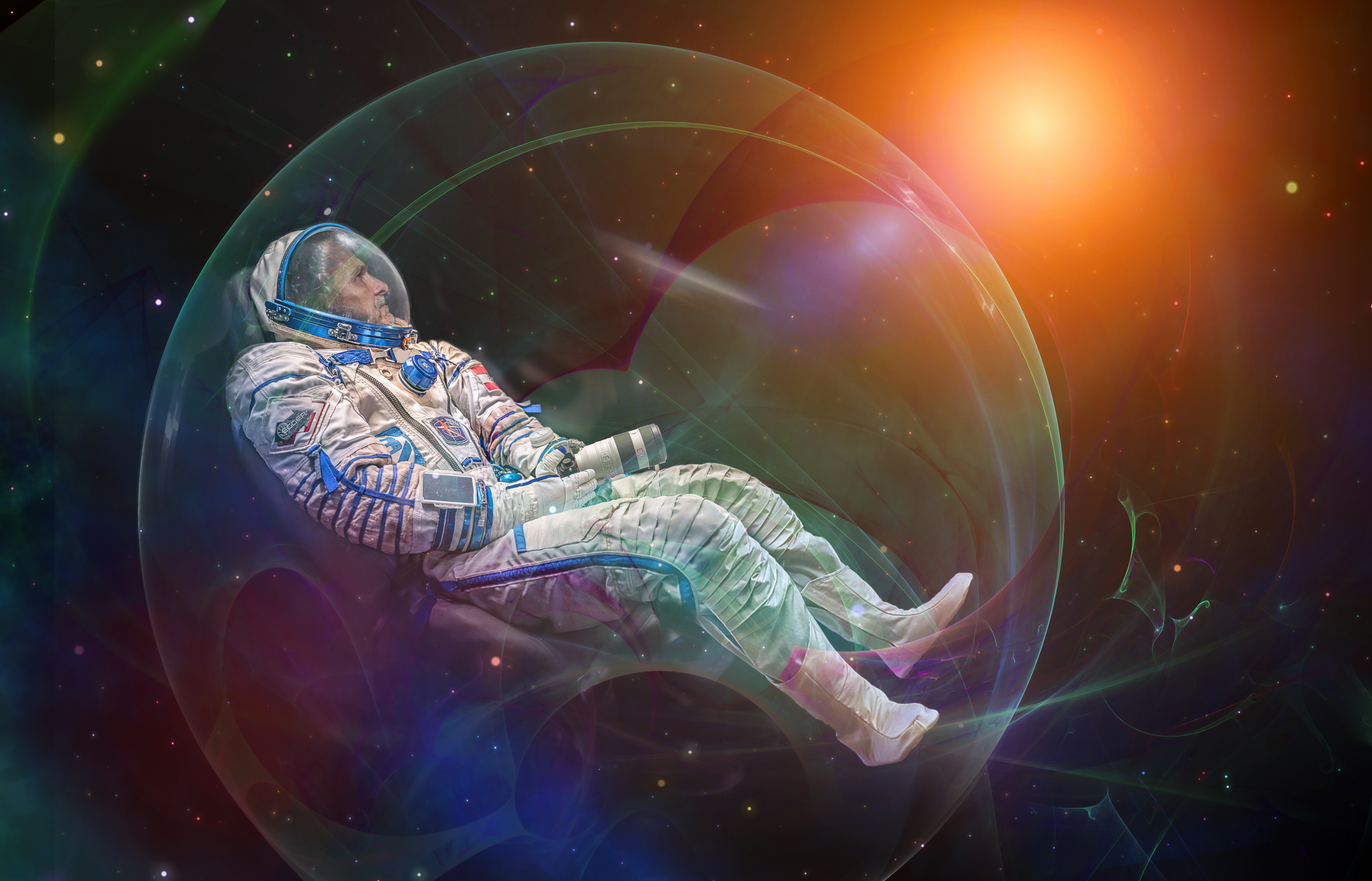 Spontaneous idea with existing photos: I often come up with an idea or story that I would like to implement. Then I must collect the individual parts from my photo collection. Here, too, I have to be sure that all the pieces fit together harmoniously, like in a puzzle. The shadows, perspective, colour temperature, sharpness and interaction of the elements must fit perfectly well. It‘s not always easy, but it‘s a great challenge for me.