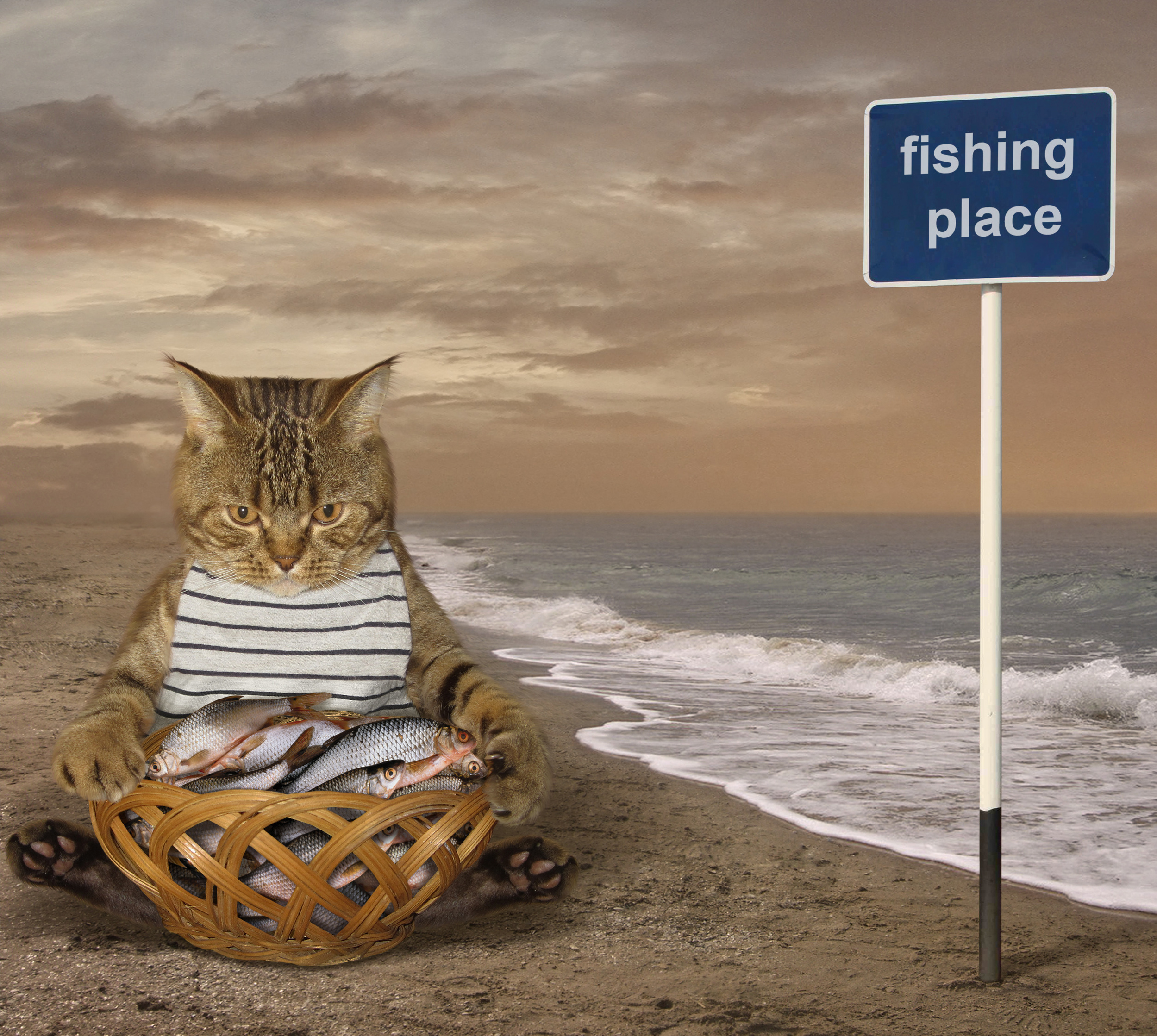 'A cat fisher on the beach' by Iryna Kuznetsova (Iridi)