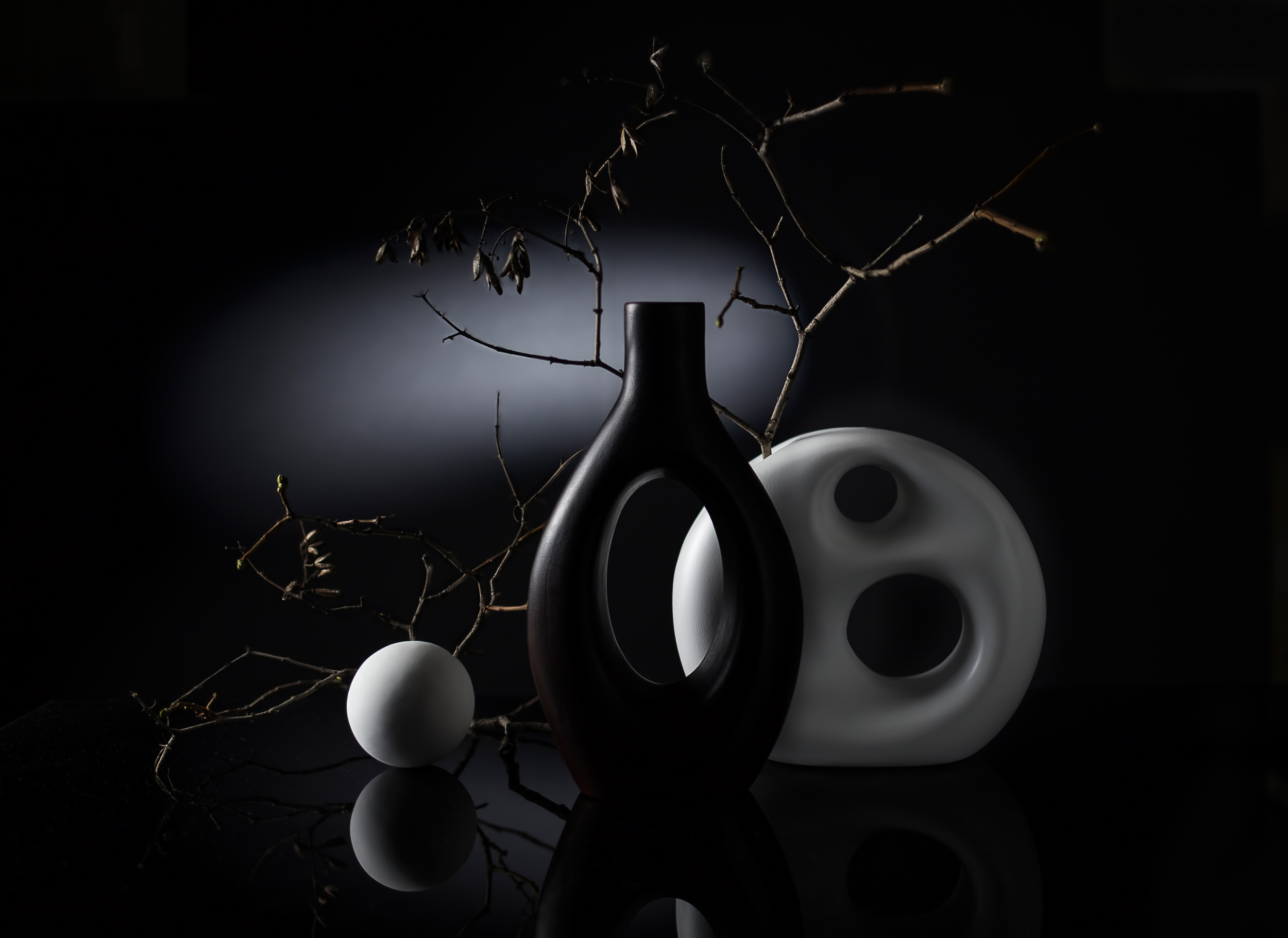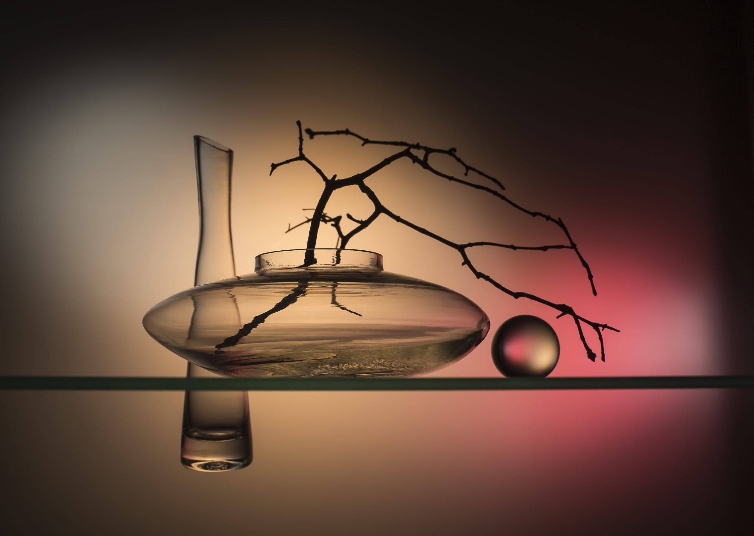 Along with technical perfection, I was constantly improving my own style. It was not interesting for me to shoot, like everyone else, jugs and vases with flowers, I wanted to do something unusual. So I have two main directions: compositions made up of glass objects, and compositions of solid opaque objects with complex lighting. I do not seek to have some deep hidden meaning embedded in the composition, it is enough for me to harmoniously arrange my "models" and beautifully illuminate them. I carefully select objects for my works, usually 10-15 variants of the same composition with different objects are obtained, until in the end there is one, the only true, most aesthetic option. So I can say without any doubt, that to me, the technical perfection, the composition and the aesthetics are the most important. However, sometimes I have jobs in which I try to put some feelings.