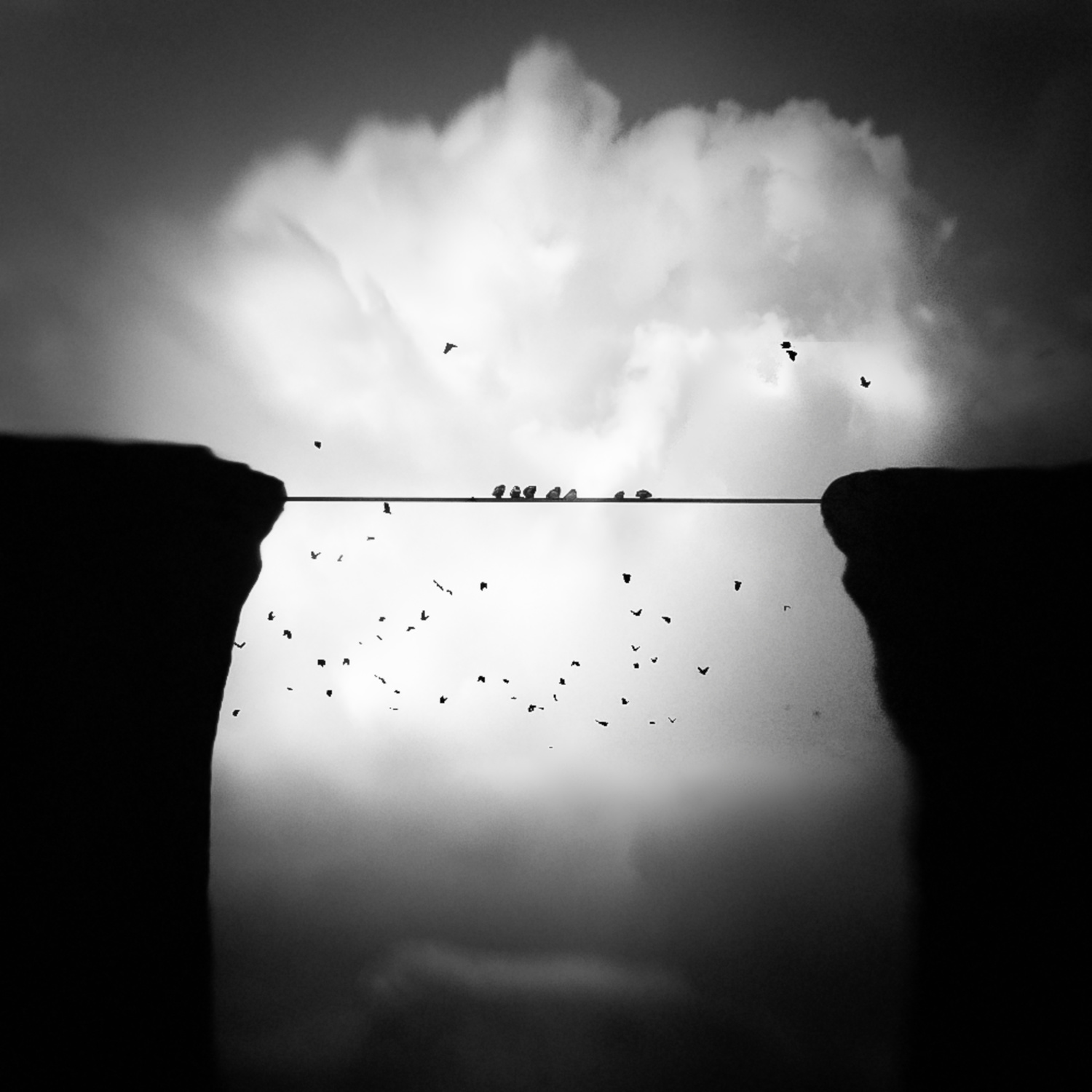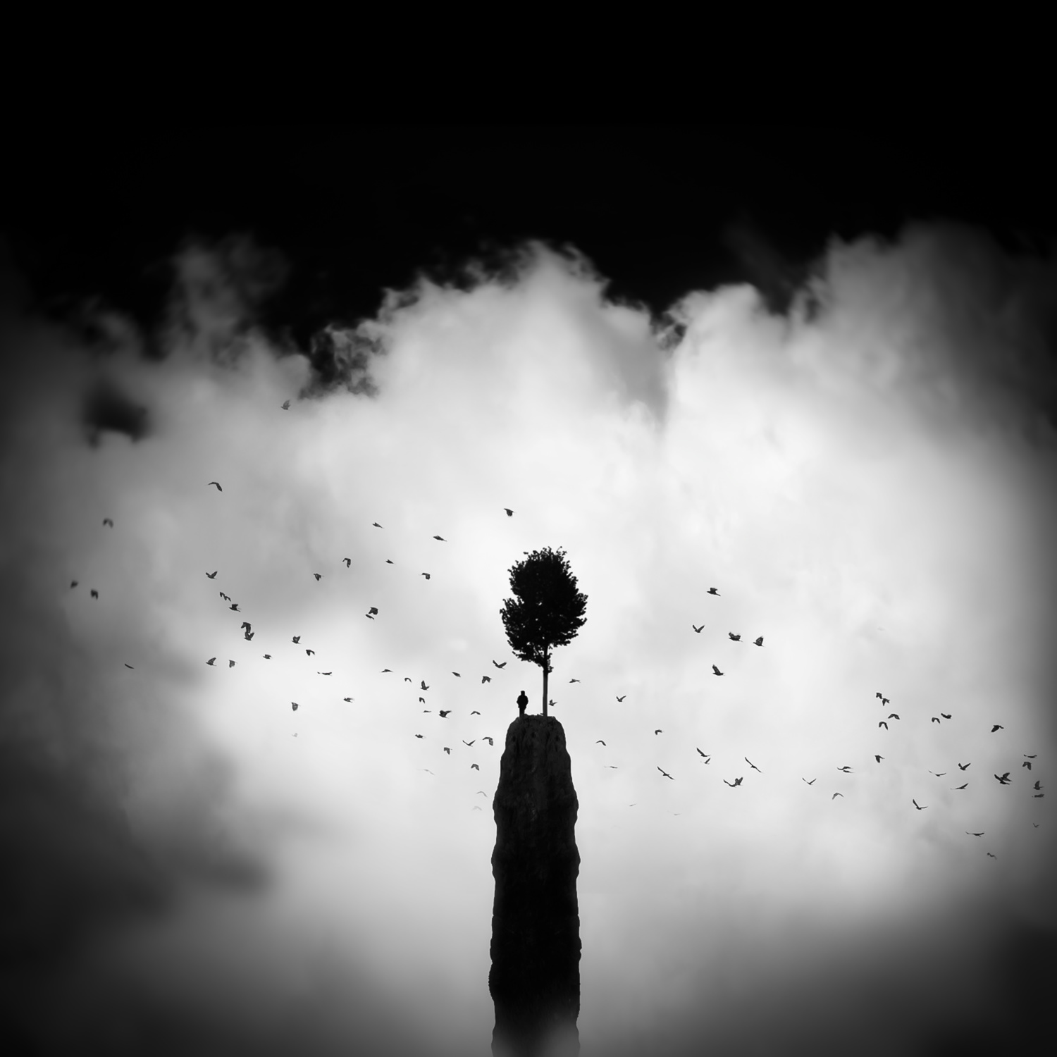 Digital image creation offers me the possibility to transform my visions into images. If I see an idea with my inner eye, I try to develop it creatively. To create emotions in my works, I like to use powerful black and white contrasts, with strong contrasts in the depiction of the size of objects and with an interesting lighting design. I often use objects such as clouds, birds, lamps and people as silhouettes, often represented very small.