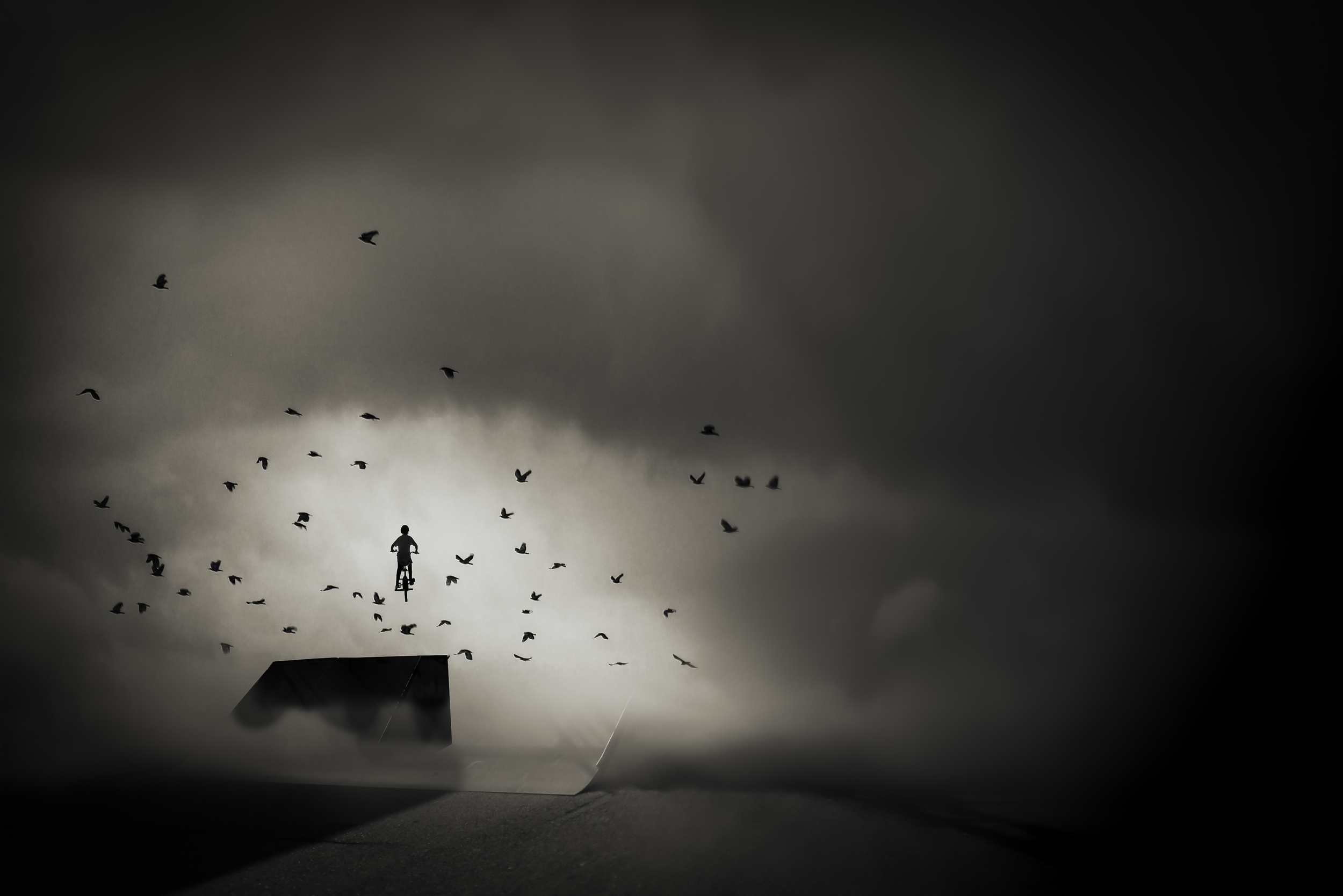 Working out a picture can take weeks, sometimes even months, until I am satisfied with the result. Each of my works reflects a part of me and my life. To deepen the narrative dimension of my pictures and to emphasize the emotions of a photograph, I create my images in black and white with strong contrasts. By using strong contrasts, I create a unique atmosphere that expresses the feelings more intensely to reach the viewer of my pictures.